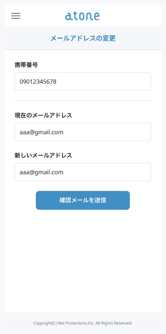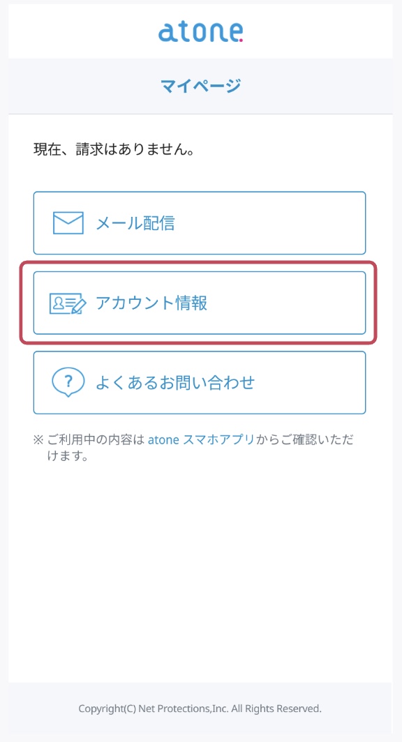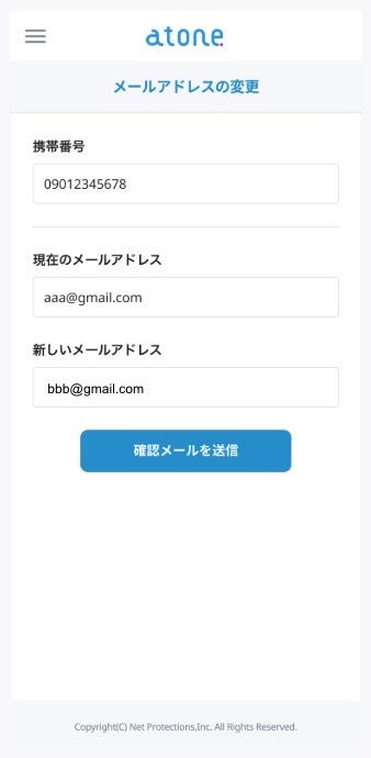 つど後払いのみご利用のお客様で、atoneをご利用の電話番号やメールアドレスの変更が必要な場合、マイページのログイン画面、またはマイページから登録情報の変更が可能です。